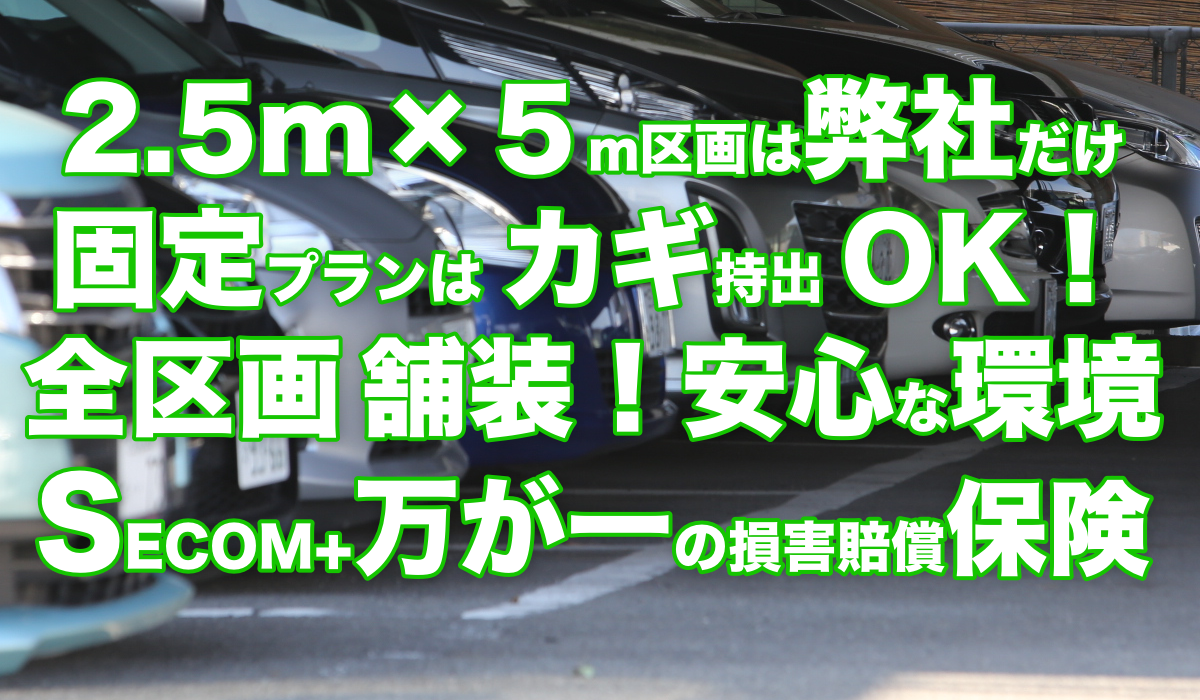 | 車の鍵は持っていけるのか? | 完全固定プラン(お選び)でカギは持出可能 プライバシーは完全に保護できます。 |